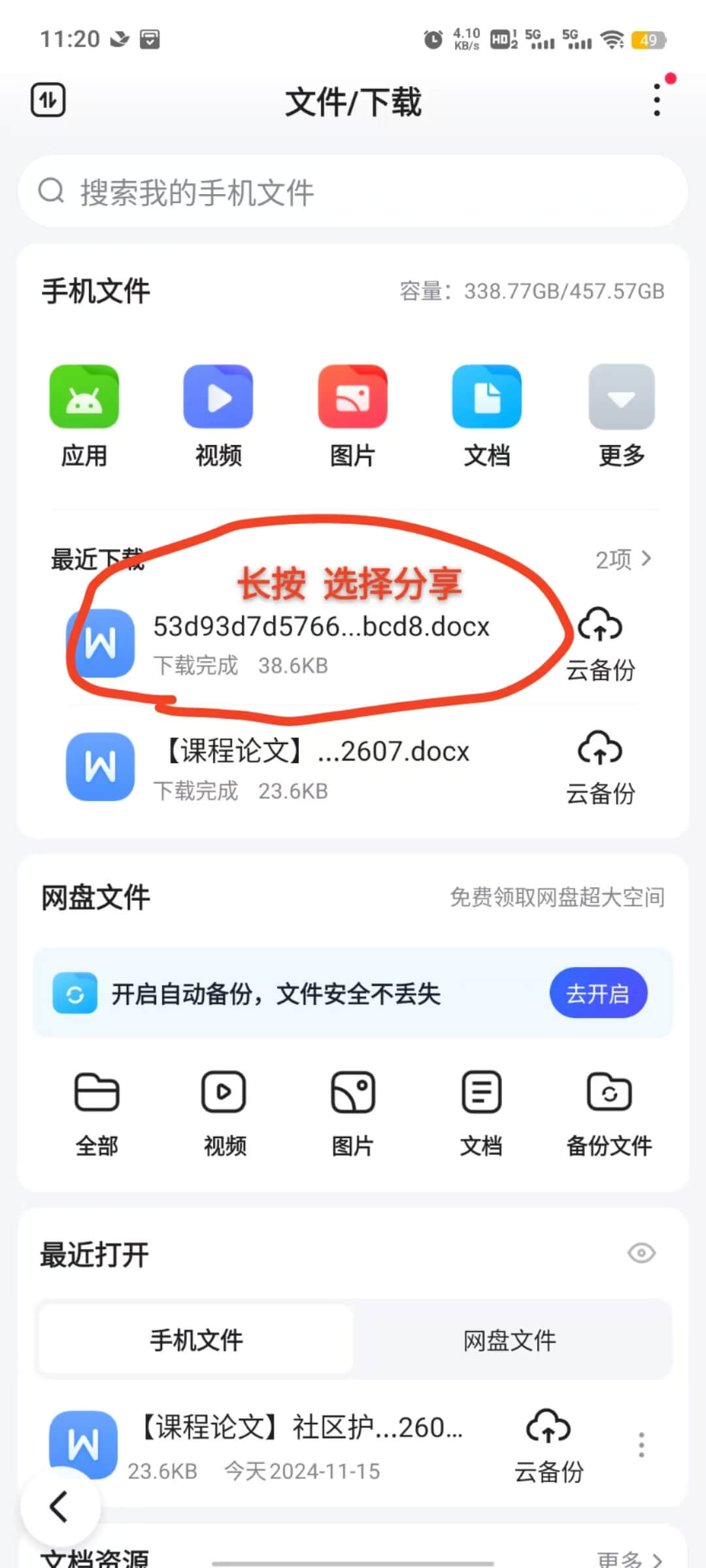 找到需要下载的论文内容,长按该内容选择分享,选择分享到微信即可