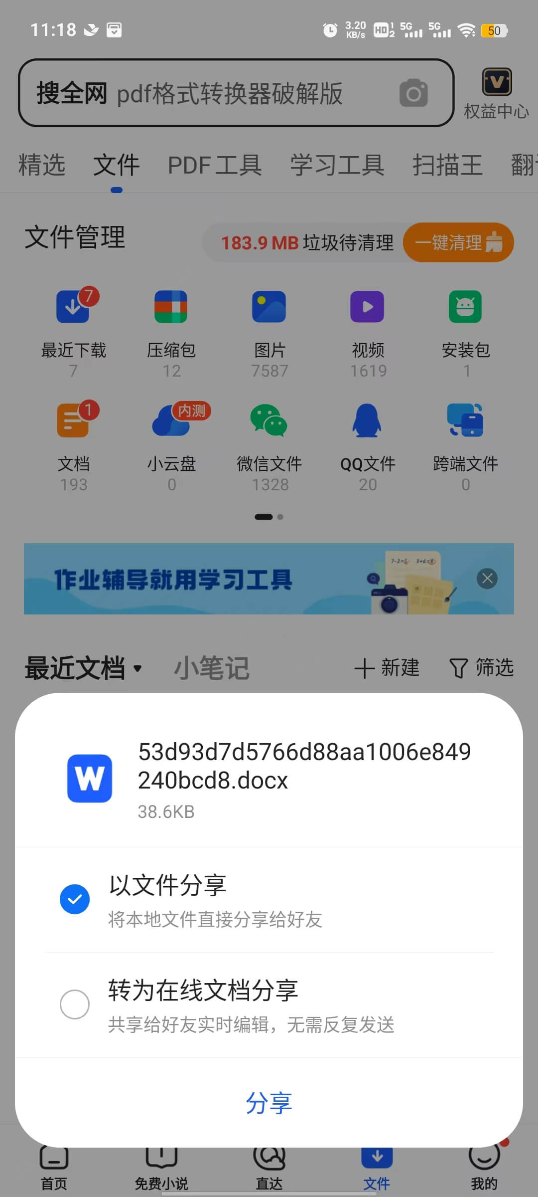 找到需要下载的论文,点击右侧三个小点点图标,点击分享,选择以文件的形式分享即可将论文以文件的形式分享到微信。